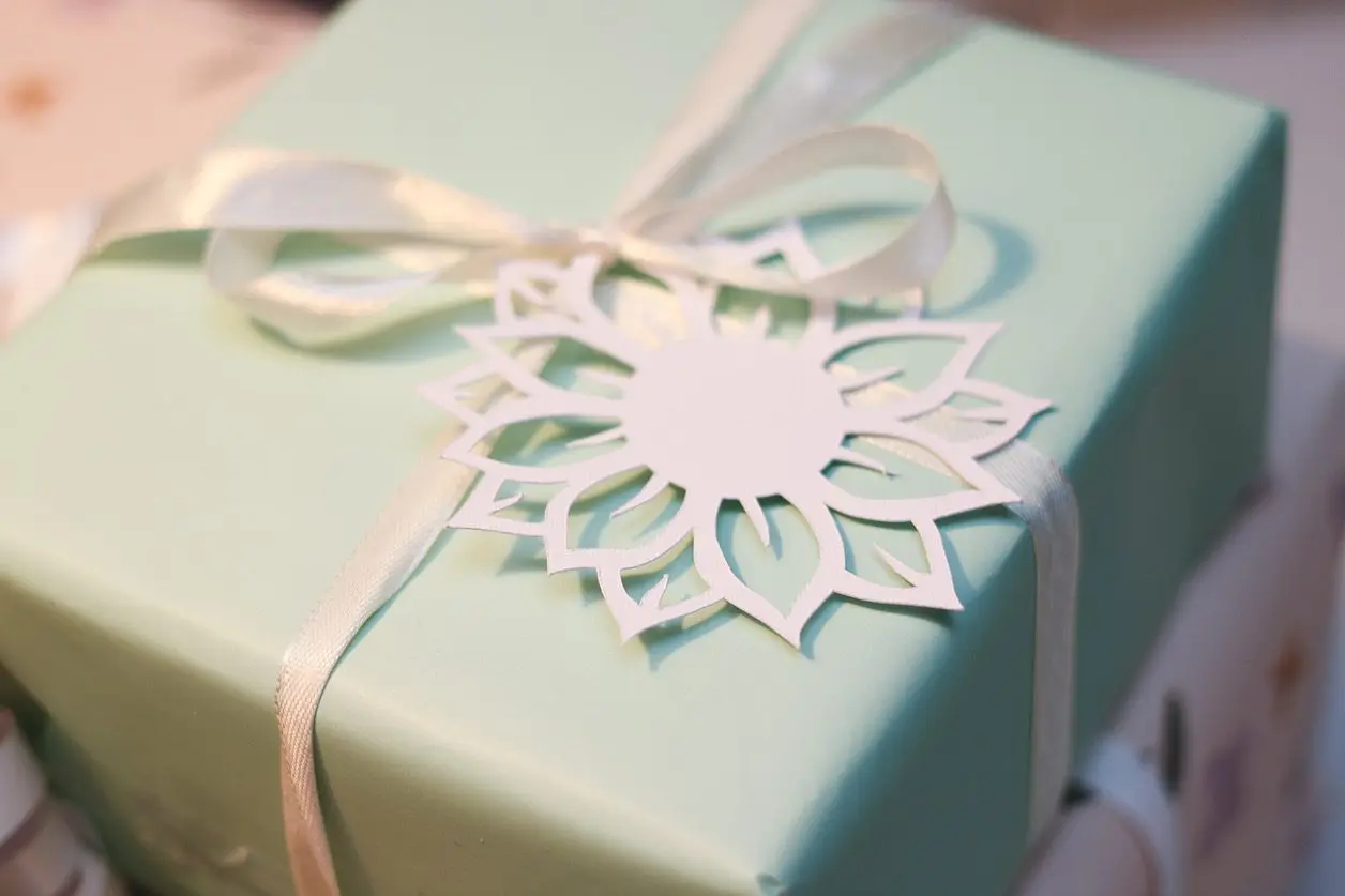 6) Nu är den fina blomman färdig att använda. Den fick bli en söt dekoration på dotterns paket!