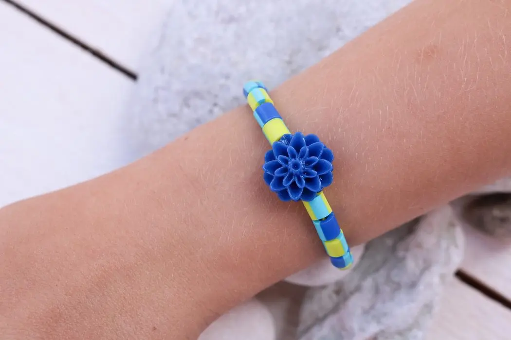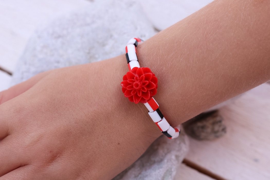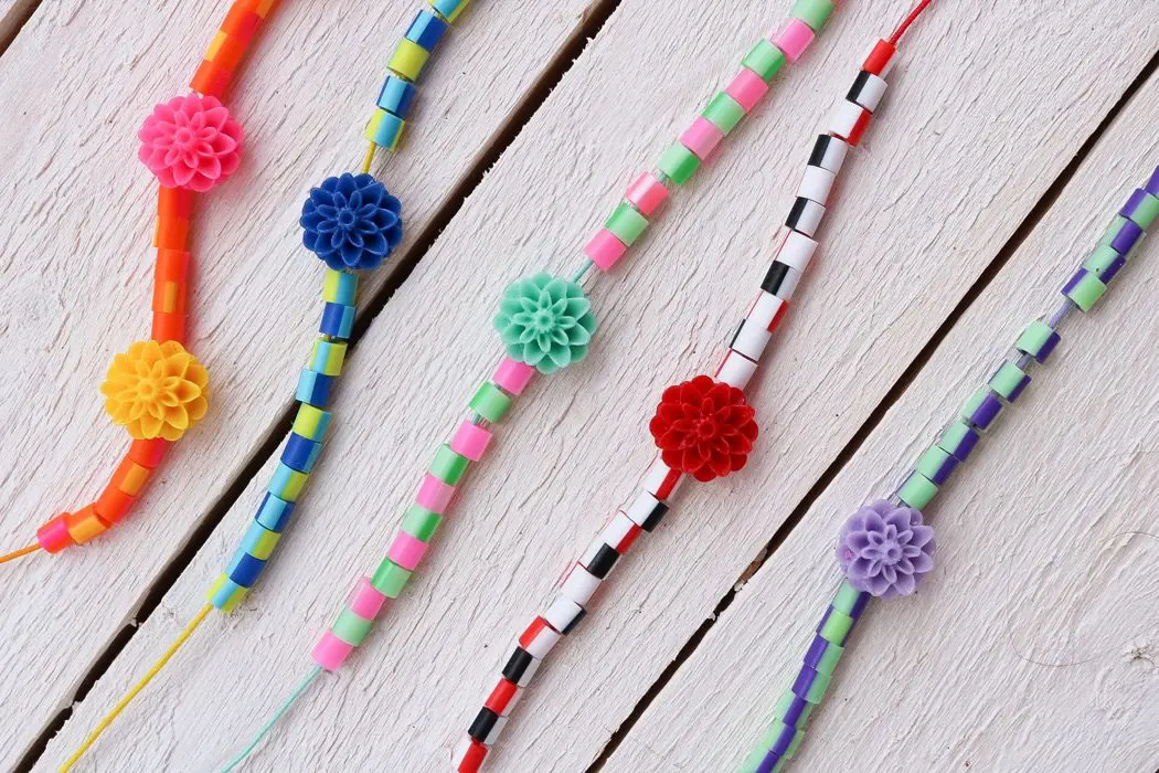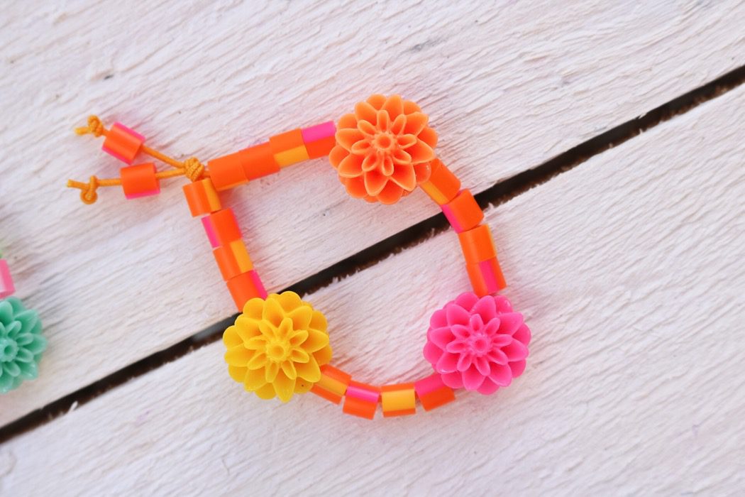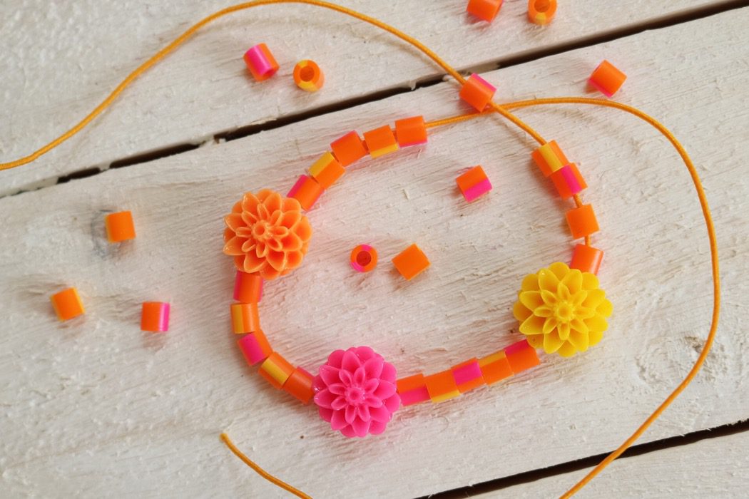 Det är så enkelt och kul att göra armband med rörpärlor och gummiband, ett bra pyssel för de minsta. De allra minsta kan pärla hur de vill! De lite större får träna sig att bara sitta still och koncentrera sig en stund, lära sig knyta knutar, räkna hur många pärlor som ska vara på var sida om blomman, och även testa att ta varannan pärla i olika färger. Ett toppensommarpyssel att ta med till sommarstugan.