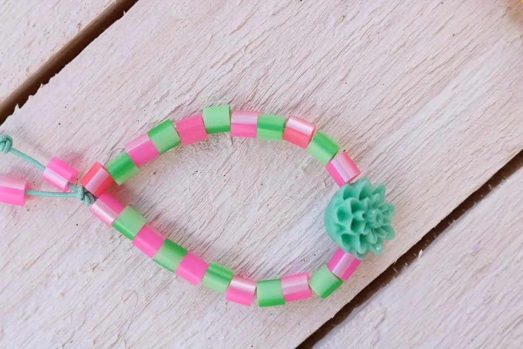 Rosa/grönt armband, det här blev lilltjejens favorit!