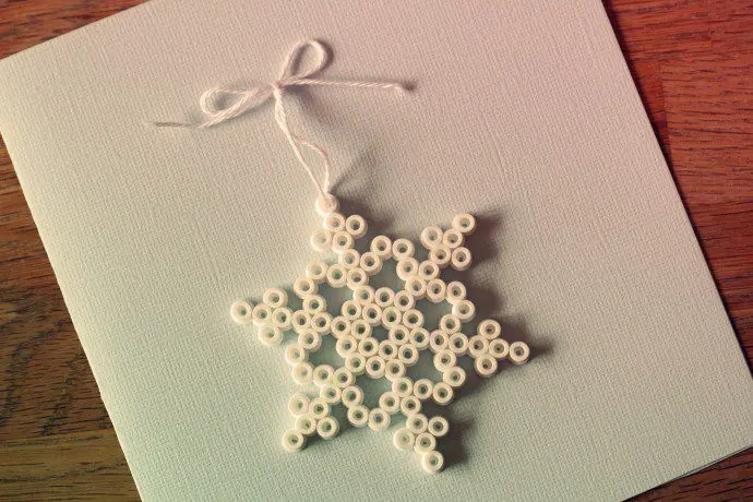 Det är ju så kul att både göra och få julkort, så här är några tips på hur du kan använda snöstjärnorna till julkort. Om du fäster snöflingorna med ett vackert band på kortet, kan man sedan ta av det från kortet och hänga upp de i granen och spara till nästa jul!