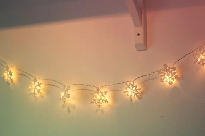 Diy: Gör en egen girlang med snöflingor, kulor och en ljusslinga.