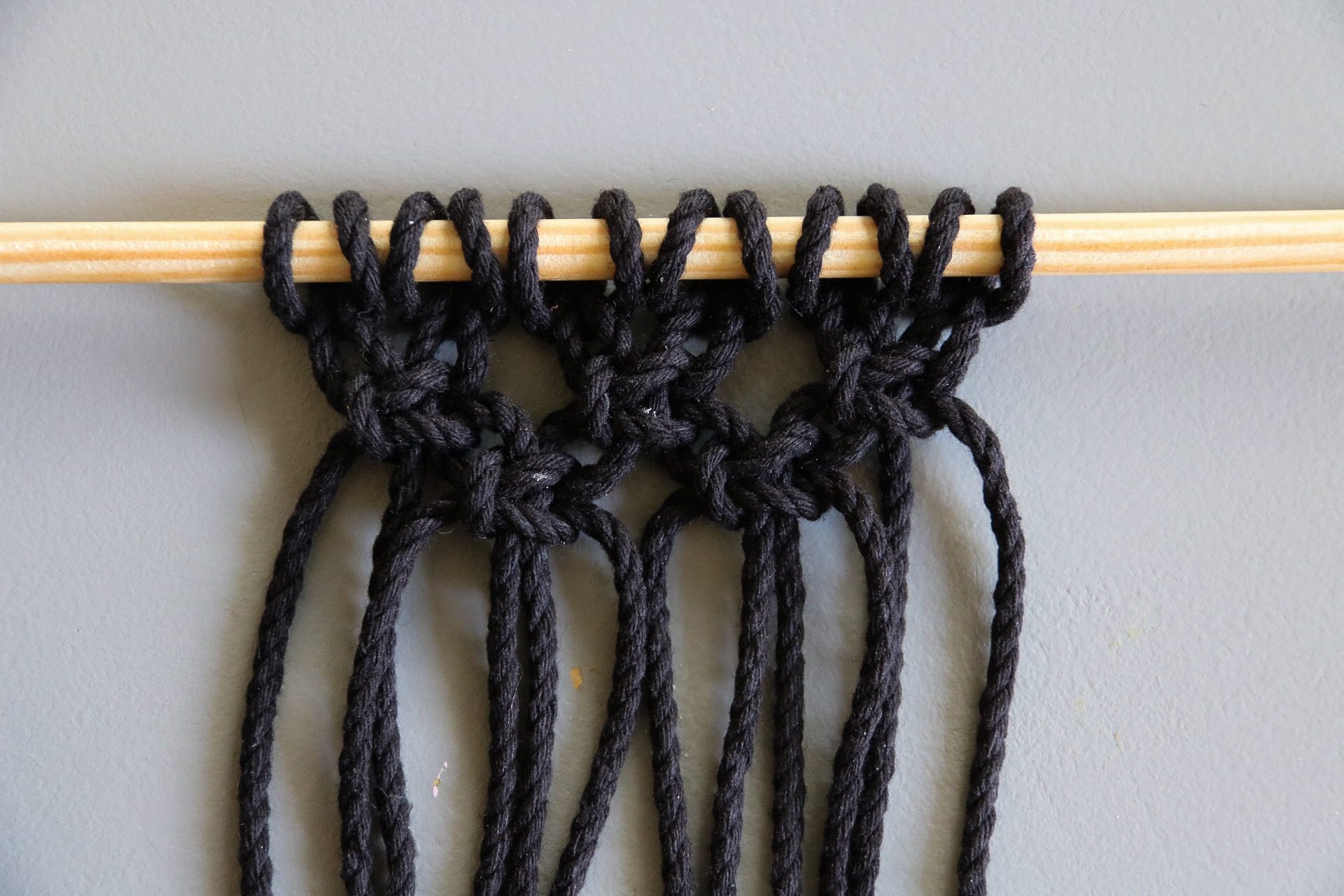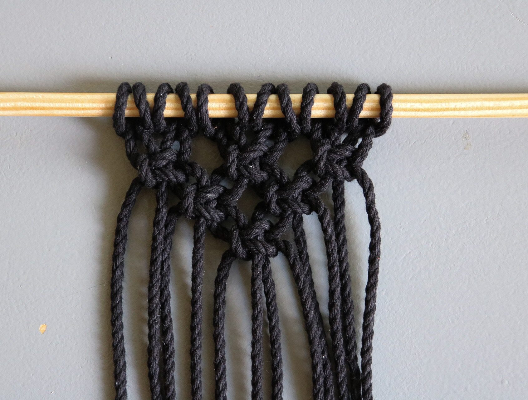 Makraméknut Square knot är den jag använt, följ bara ritningen så fixar man det lätt!