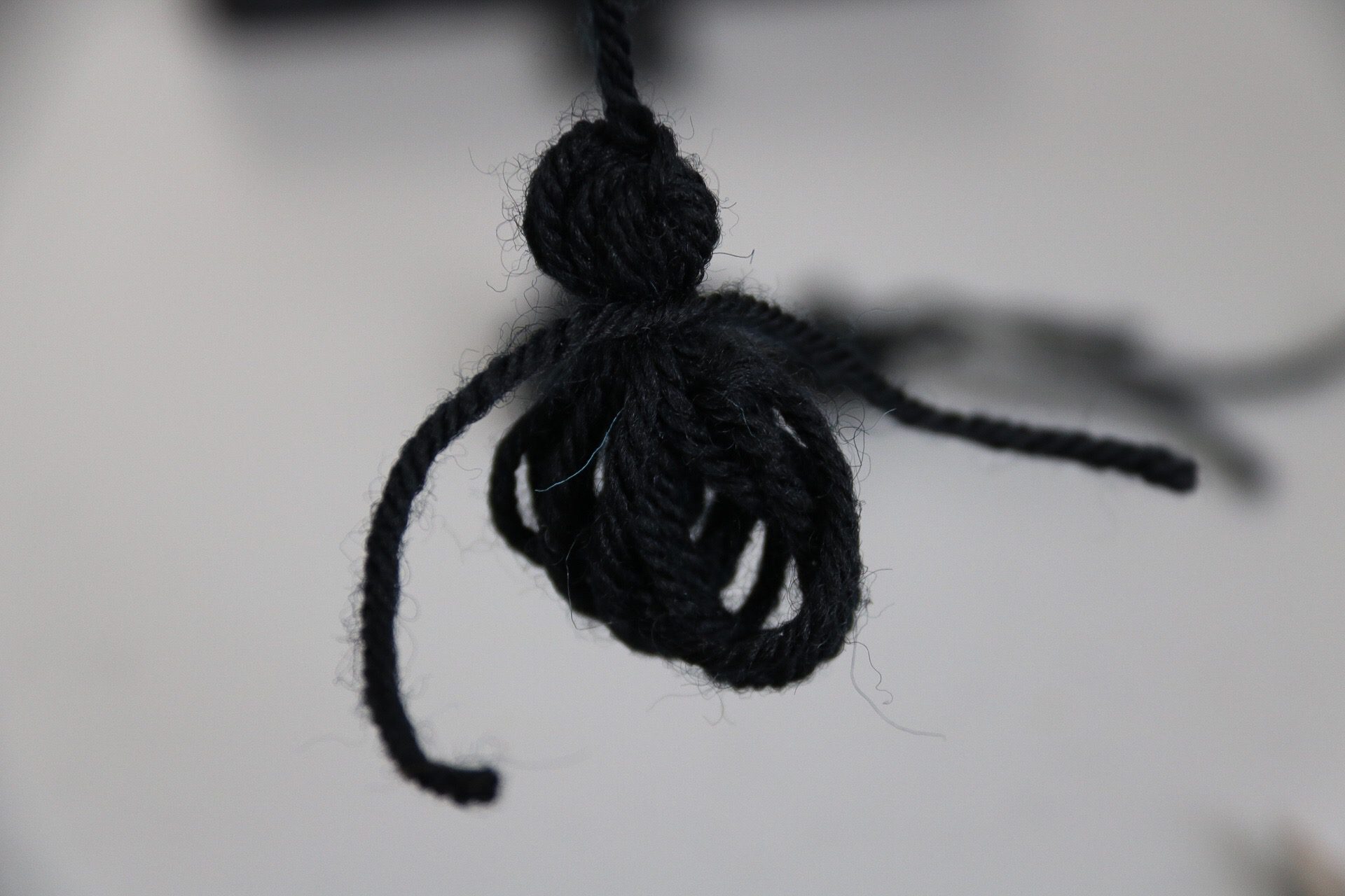 2) Tag en bit garn och knyt ihop garnhärvarn i ena änden (bild 3)