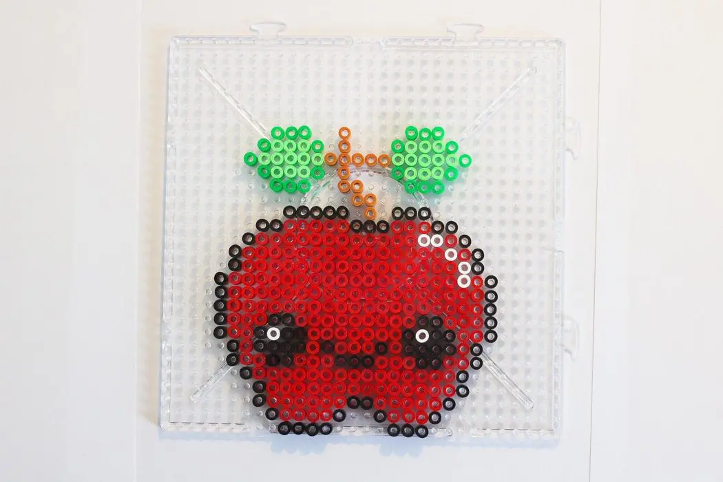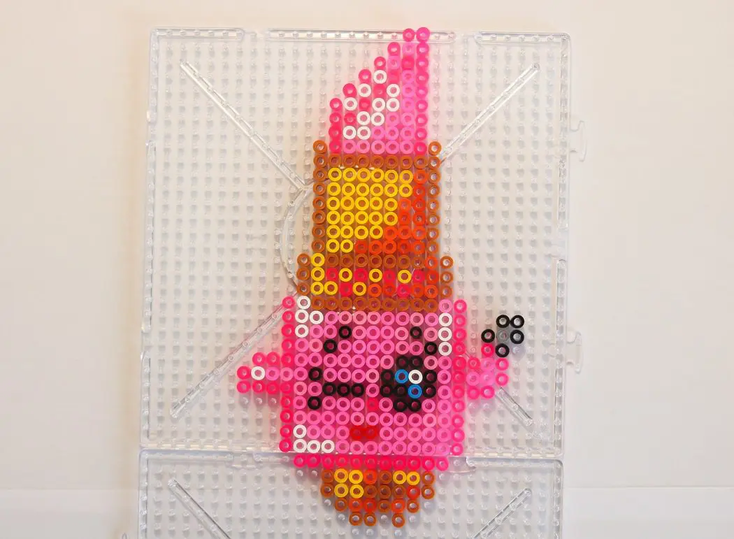 Stryktips! När du gjort klart pärlplattan och ska stryka den. Använd bakplåtspapper och lägg mellan pärlplattan och strykjärnet. Stryk med stark värme men utan ånga jämt över hela pärlplattan. Tag försiktigt av pärlfiguren från pärlplattan och låt den ligga plant och torka under en tyngd ex. Bok/skärbräda några minuter. Tag sedan fram bakplåtspappret och stryk även på den ostrykta sidan. Då blir pärlplattan extra stark.