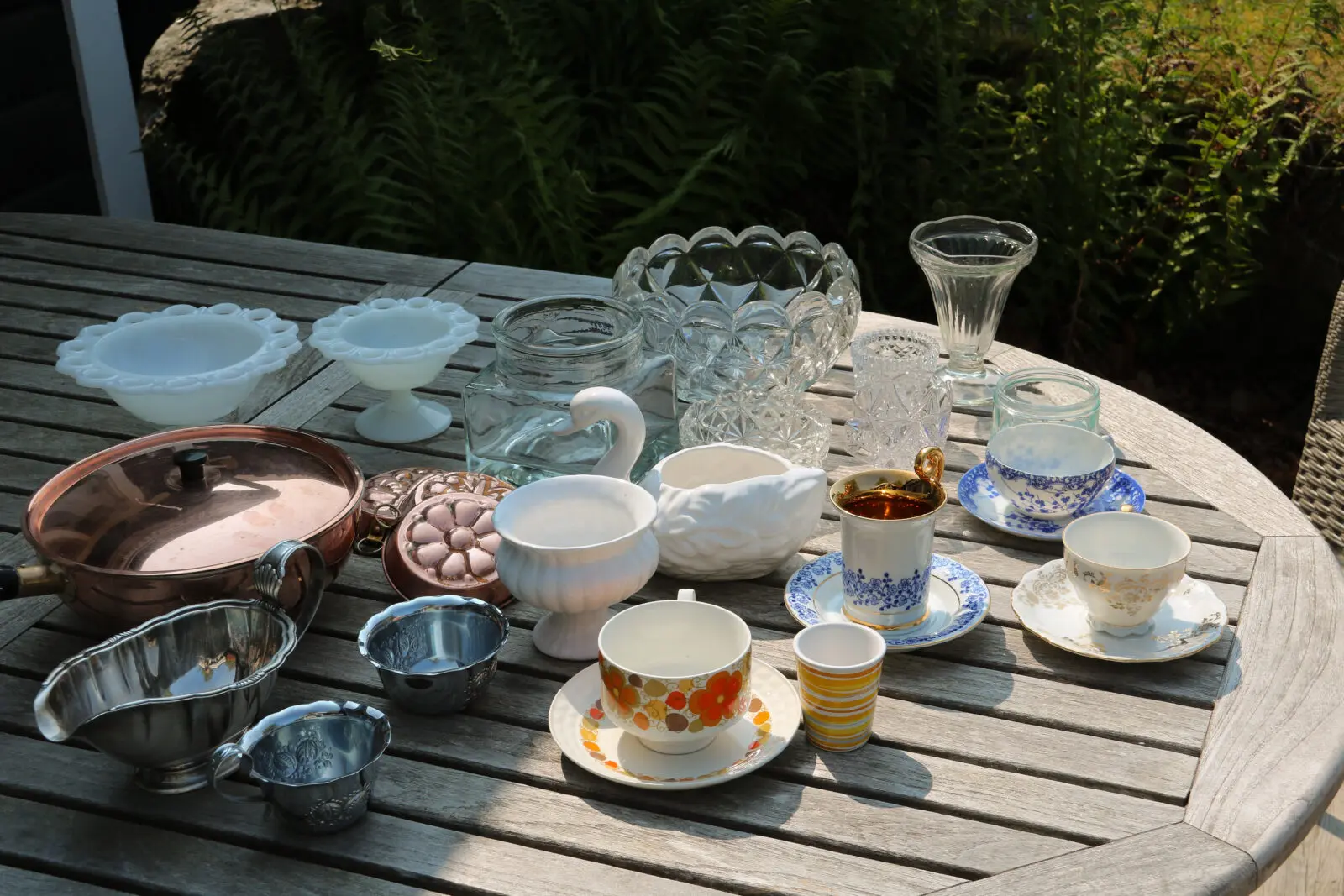 🌸 Loppisfynd: kaffekoppar, kopparformar, pressglas, silverskålar m.m.