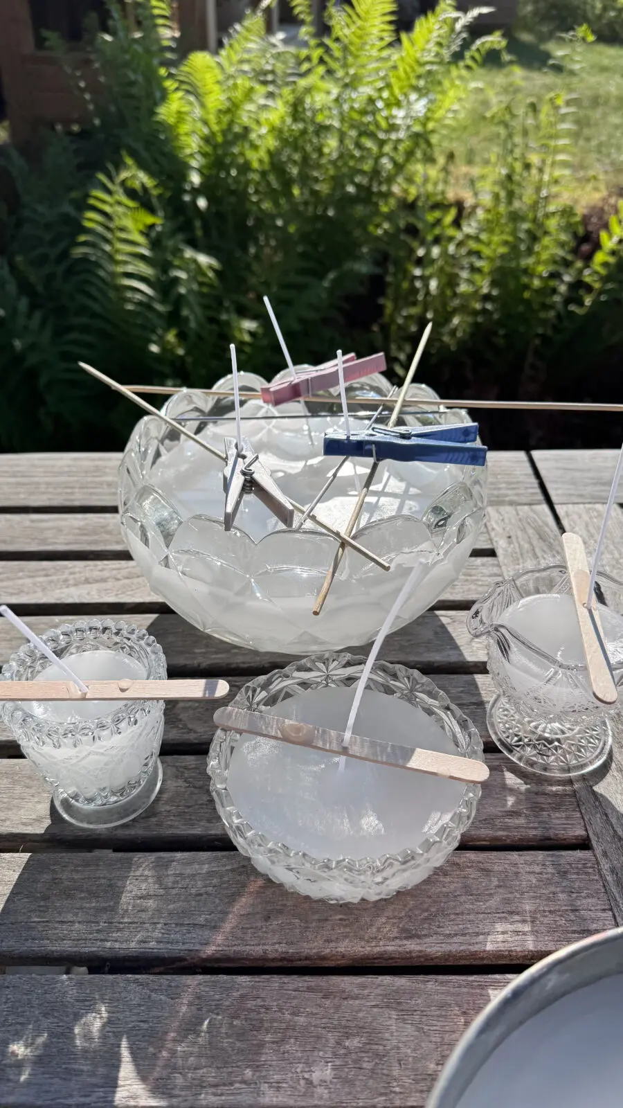 Låt stelna i rumstemperatur, det tar några timmar beroende på storlek. Ljusmassan bör vara helt avkyld och stel innan man tänder dem. Det tar ca 4-6 timmar, vänta gärna över natten för bästa säkerhet.