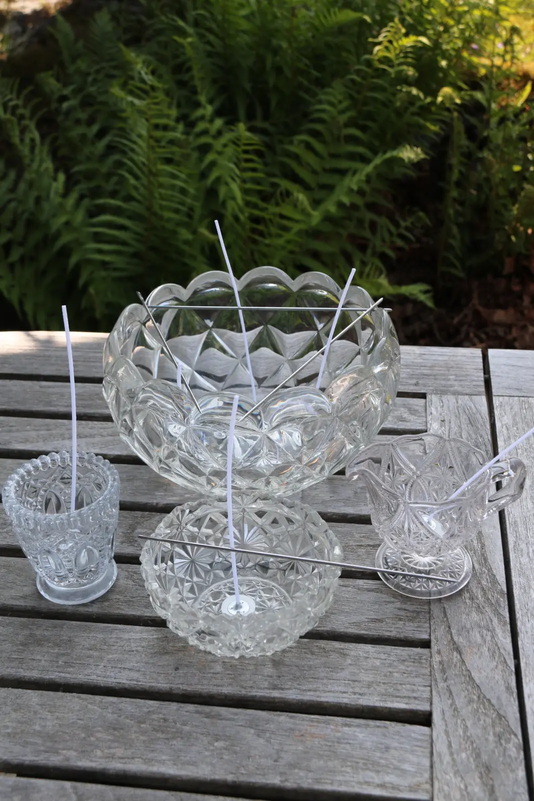 Använd kaffekoppar, pressglas, koppar, silverskålar…ja vad du kan fynda på loppis!