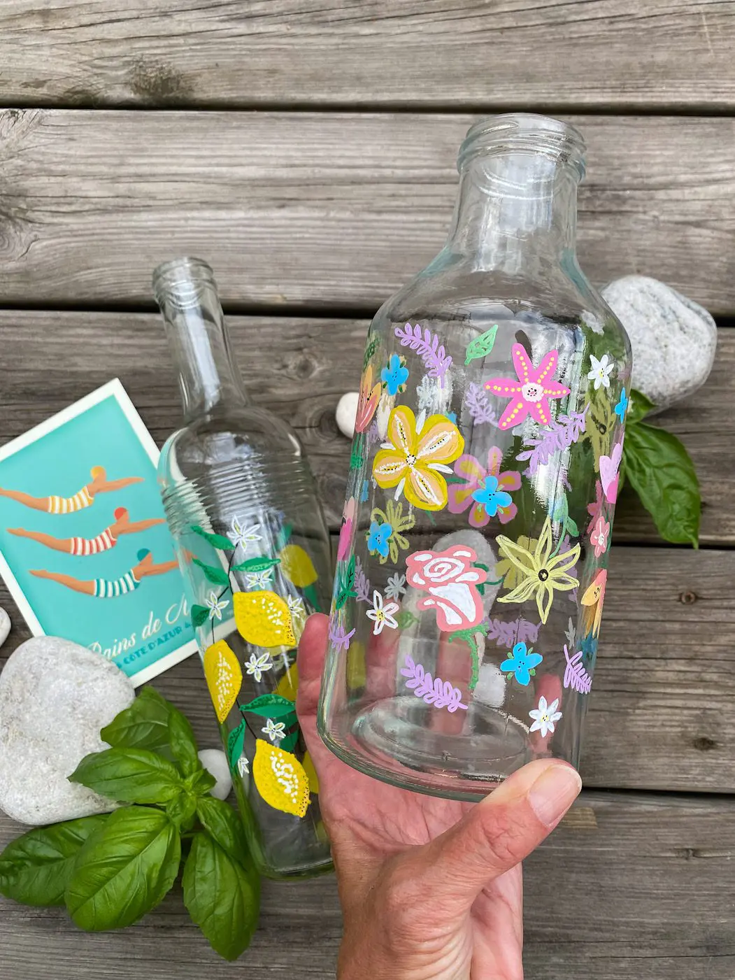Innan jag tänkt sätta igång och rita, brukar jag samla ihop lite inpiration så jag får extra lust till skapande! Små semesterminnen som kort, askar, naturmaterial samt böcker och så Pinterest brukar vara en bra kombo! Ser ni flaskan jag köpte med från Frankrike, det var den som kickade igång lusten att dekorera flaskor!