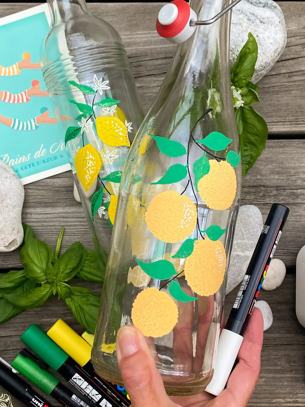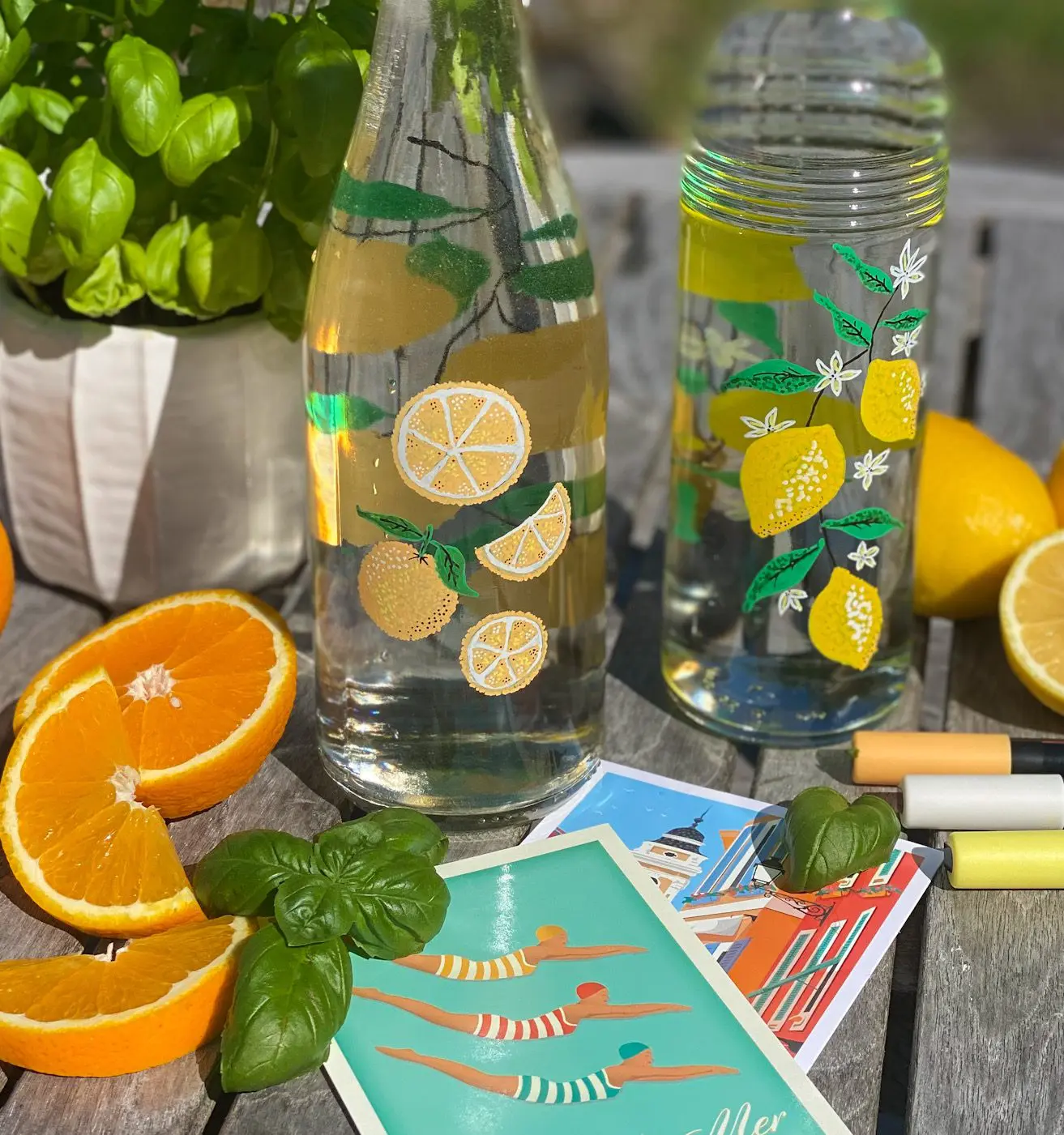 🍊 På andra sidan av flaskan ritade jag några citronskivor, som variation.