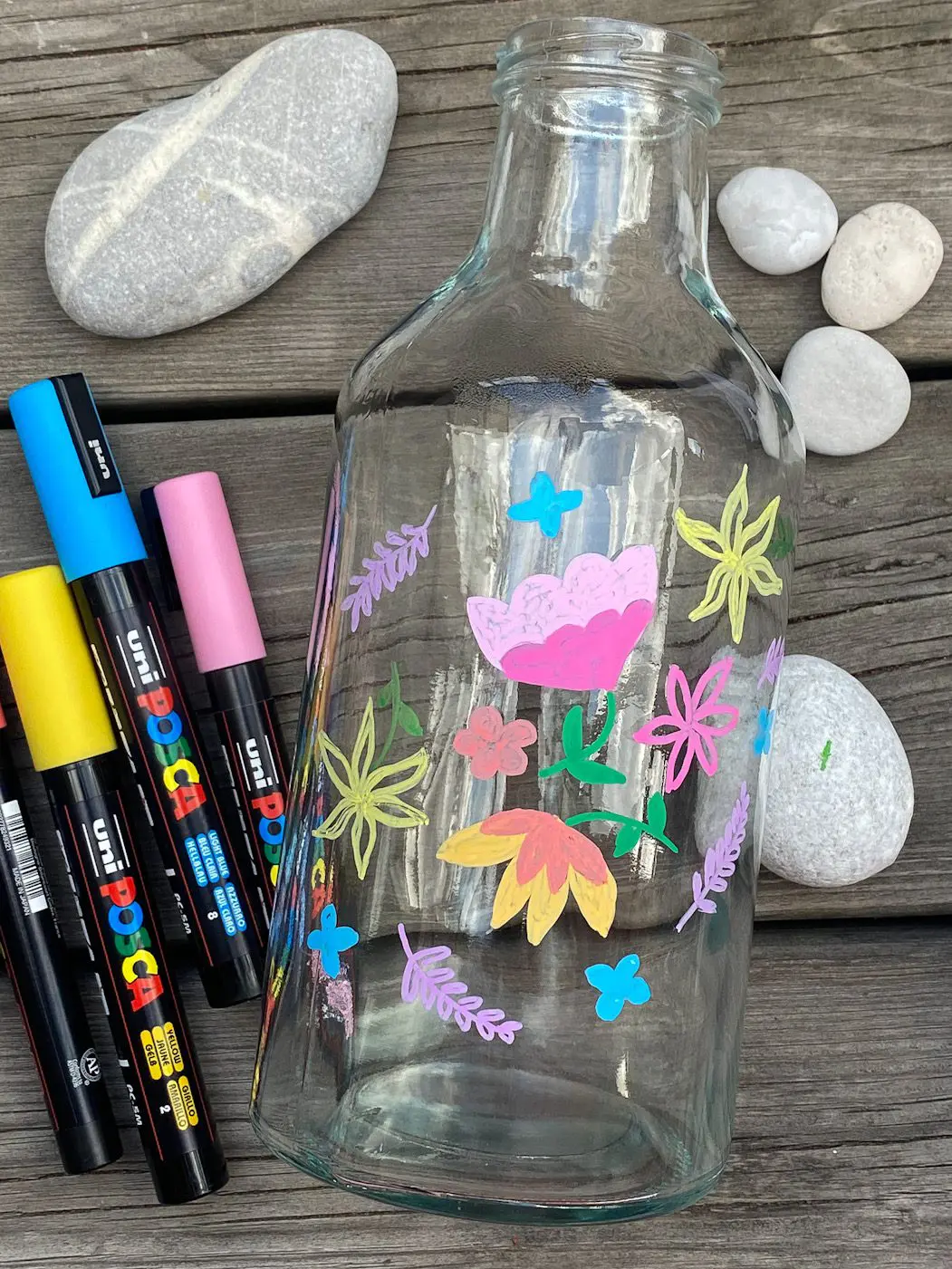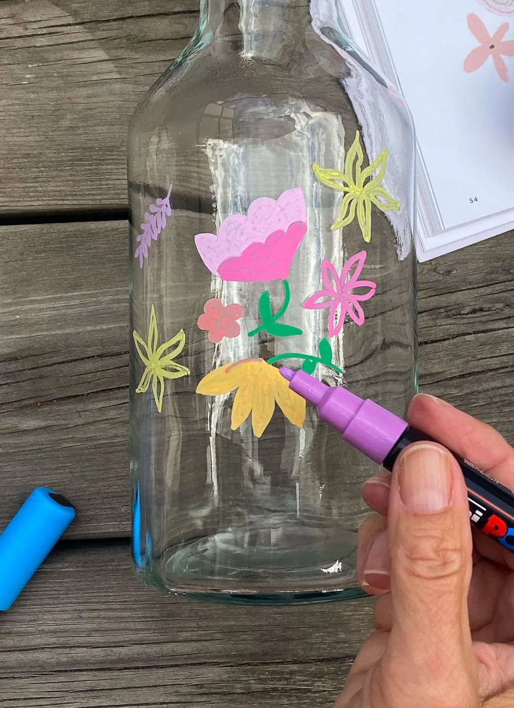 💚 Tvätta flaskorna med diskmedel och vatten, och torka helt torrt. Då fäster det du ritar extra bra.