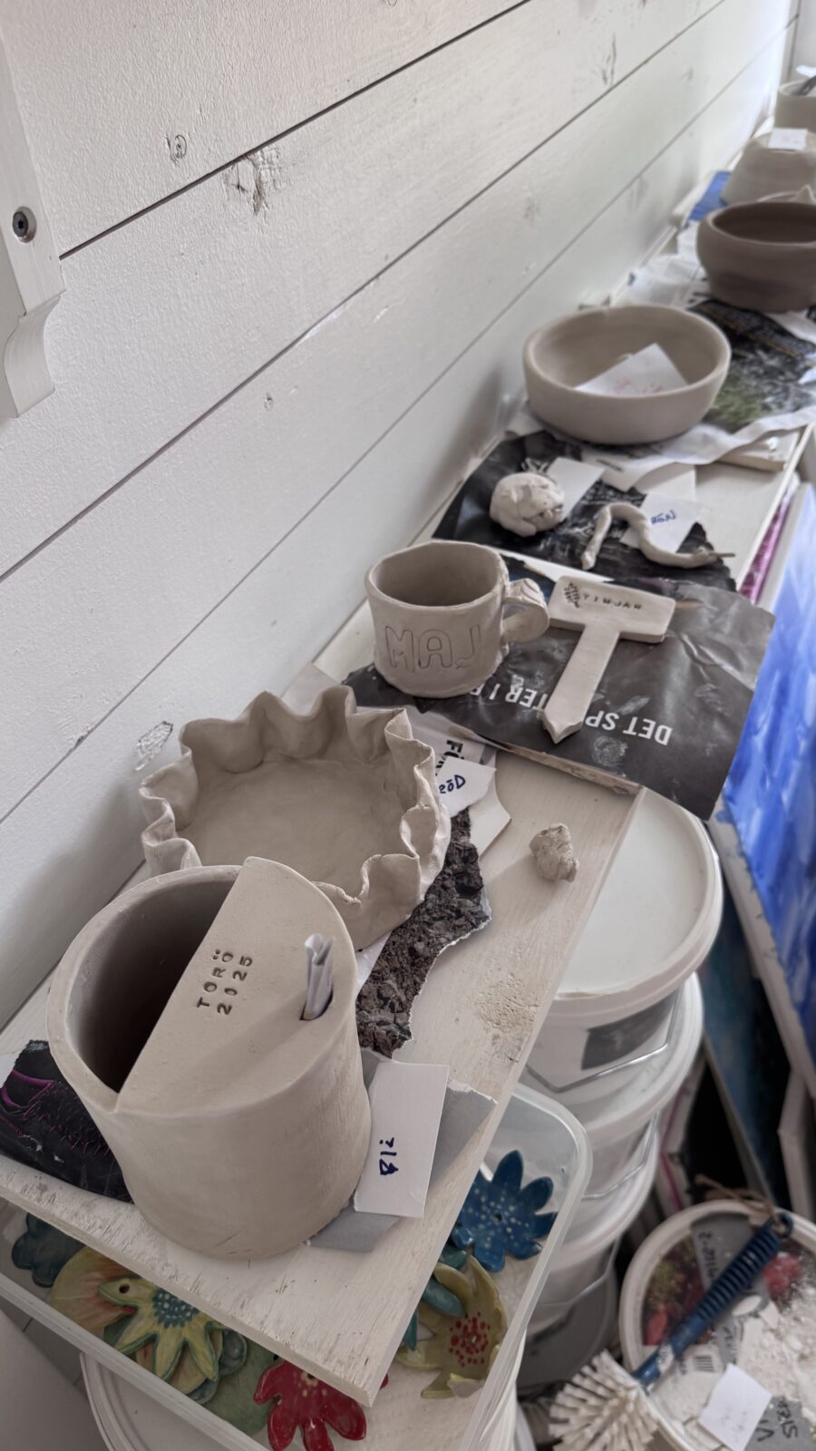 🌸 Nu ligger jobbet på mig att putsa något på varje varje sak, skröjbränna, glasera och sista keramikbränningen! Sen får mina gäster hämta keramiken, eller så levererar vi en låda keramik till gänget eftersom vi bor ganska nära!