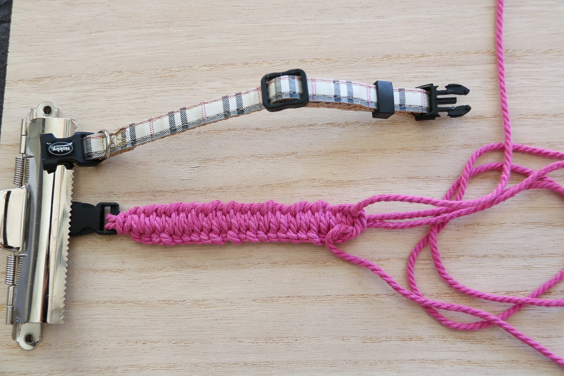 När sommaren kommer får jag sådan lust att pyssla med makramé….Ett himla bra pyssel att sitta med ute i solen! Praktiskt att ta med i picknickkorgen, husvagn, sommarstuga eller båt, inget kladd och tar liten plats. Jag har tänkt göra lite olika pyssel i makramé här på bloggen den kommande tiden…Här är det första ”Hundhalsband i makramé” eller om man hellre vill använda dem till katten eller kanske som armband till sig själv!