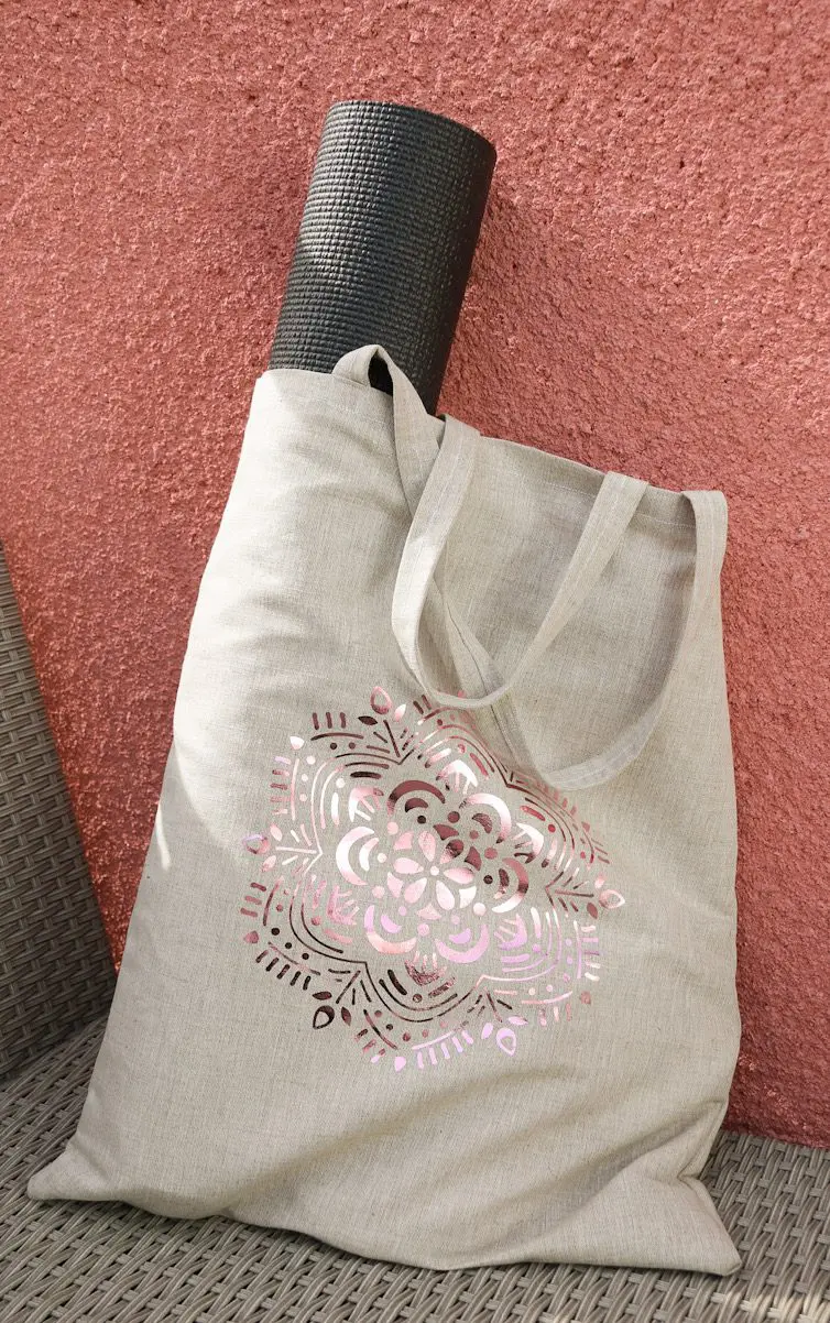 Jag har visat tidigare här på bloggen när jag tryckt fast Iron on vinyl med med Cricut maker maskin på en kudde. Då gjorde jag en gedigen beskrivning, och man gör precis på samma sätt med dett tygtryck till en tygkasse. Klicka på länken för att komma till ”Gör en kudde med tygtryck”
