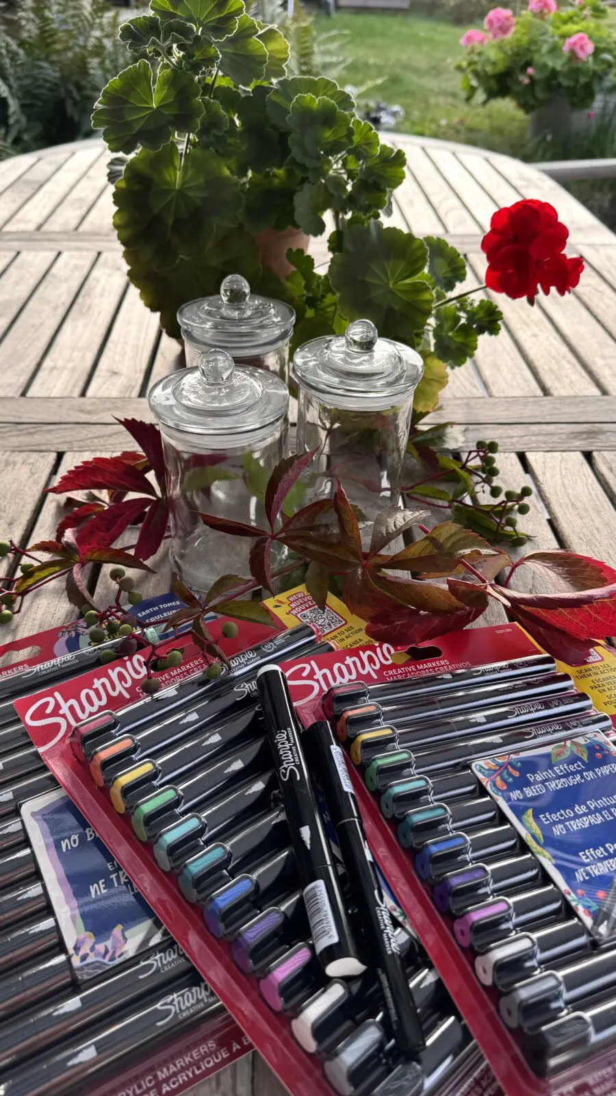 - Måla med Sharpie – rita direkt på glaset. Låt färgen torka ordentligt innan du målar nästa färg.