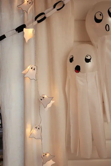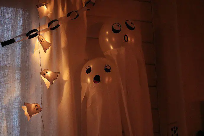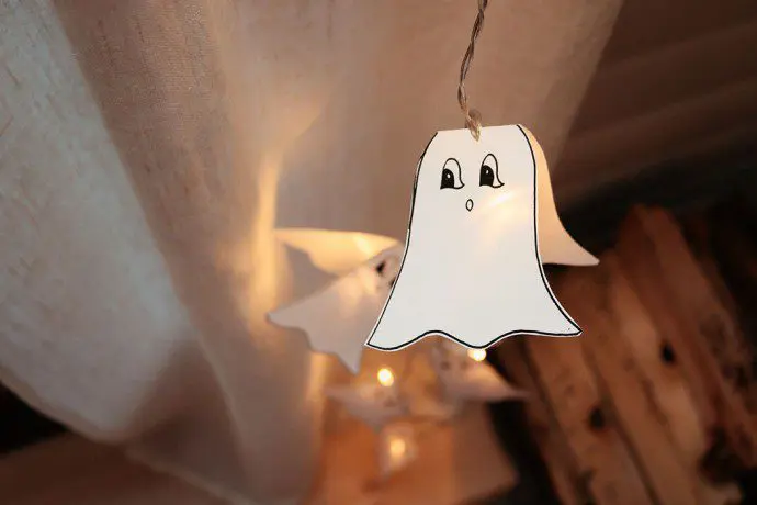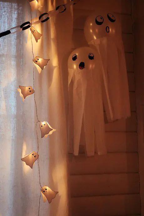 Spökljusslinga, som endast är gjort av lite vitt papper och en ljusslinga.