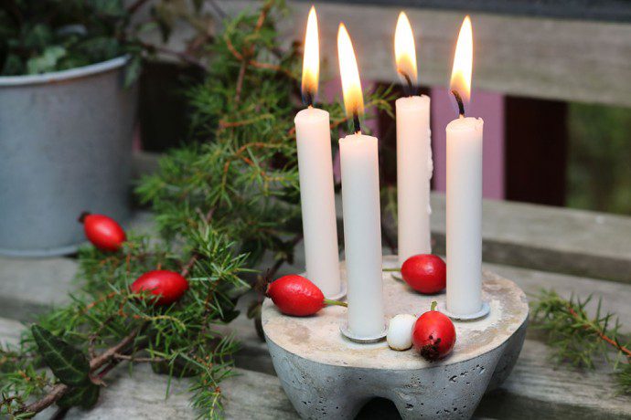 Advent närmar sig, och i år tänkte jag fixa en ny ljusstake! Betong är något jag aldrig provat, och jag tycker att det är ett så snyggt material! Men när man bor i lägenhet….kan man gjuta betong inomhus…Ja det funkade alldeles utmärkt! Adventsljusstaken är ett riktigt återbrukspyssel, då den är gjuten i petflaska!