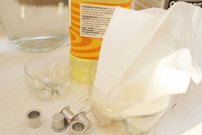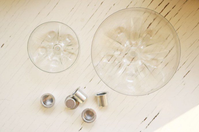 - Börja med att klippa till petflaskorna i önskad höjd.
