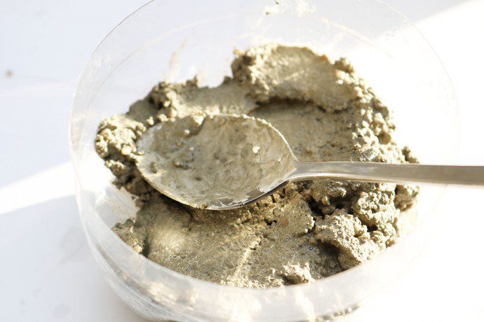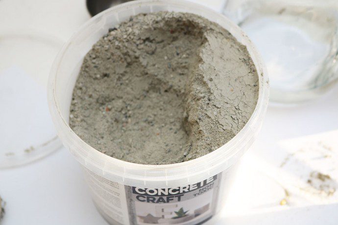 - Blanda betong, jag har beställt min betongen från Creativ Company, den kom i en smidig 1 kg hink, och var lätt att blanda. Man tar en del vatten och ca 10 delar betongpulver. Jag blandade i en vanlig youhurthink och det enda verktyget var en gaffel!