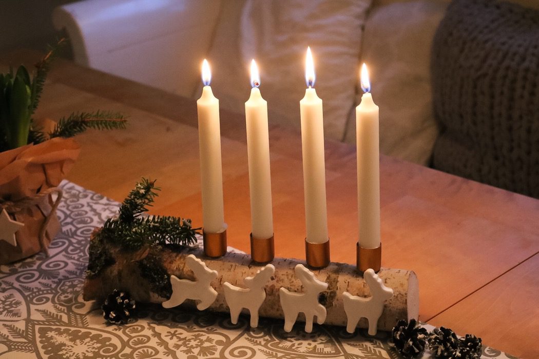 Klassisk adventsljusstake i minsta tjejens rum, tycker det är så fint när det lyser i vårt trapphus!