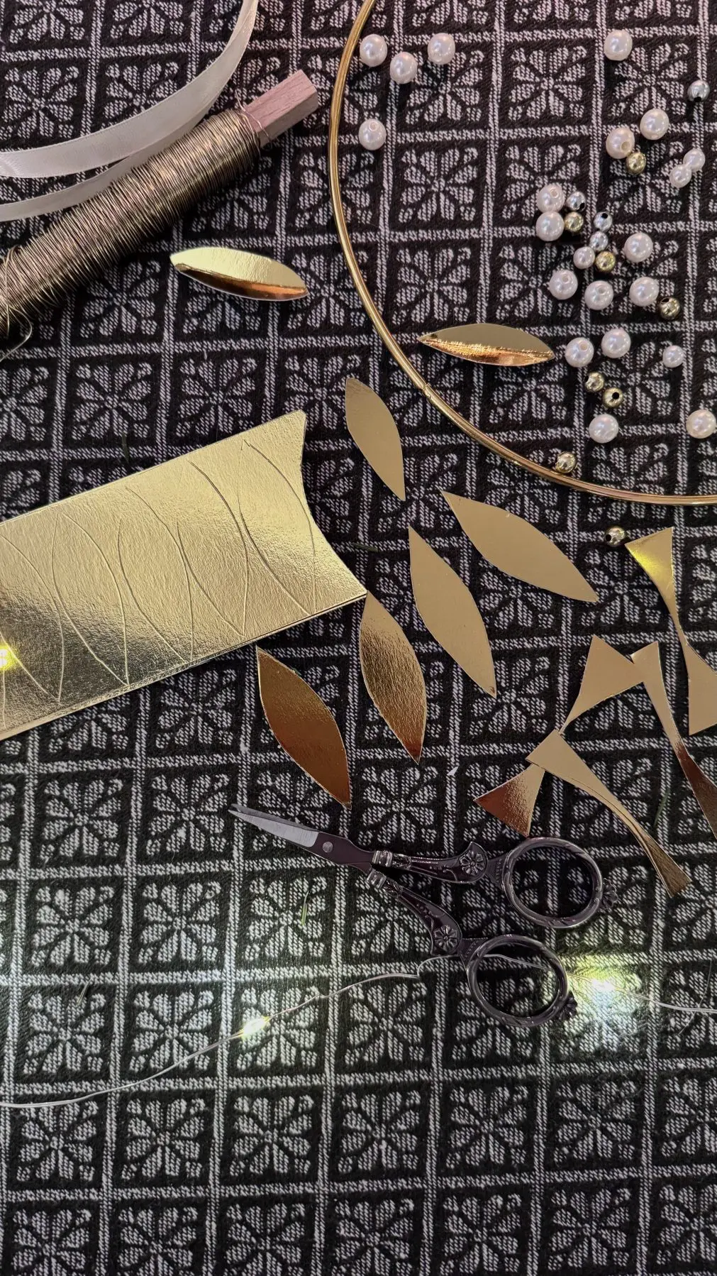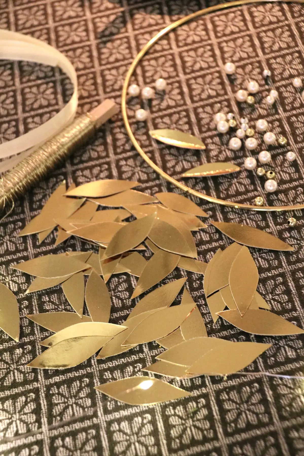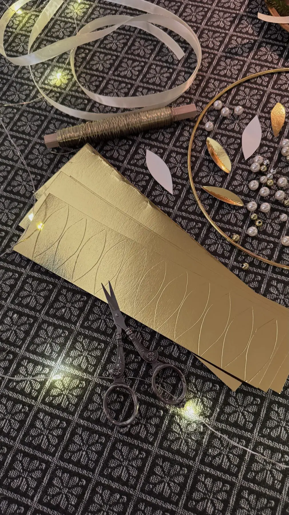 🌟 Guldlöv längd 5 cm, bredd 2 cm ca 48 st löv använde jag till den här kransen.