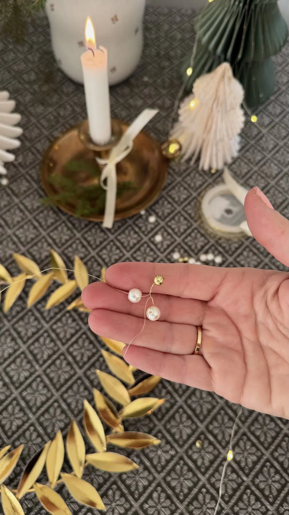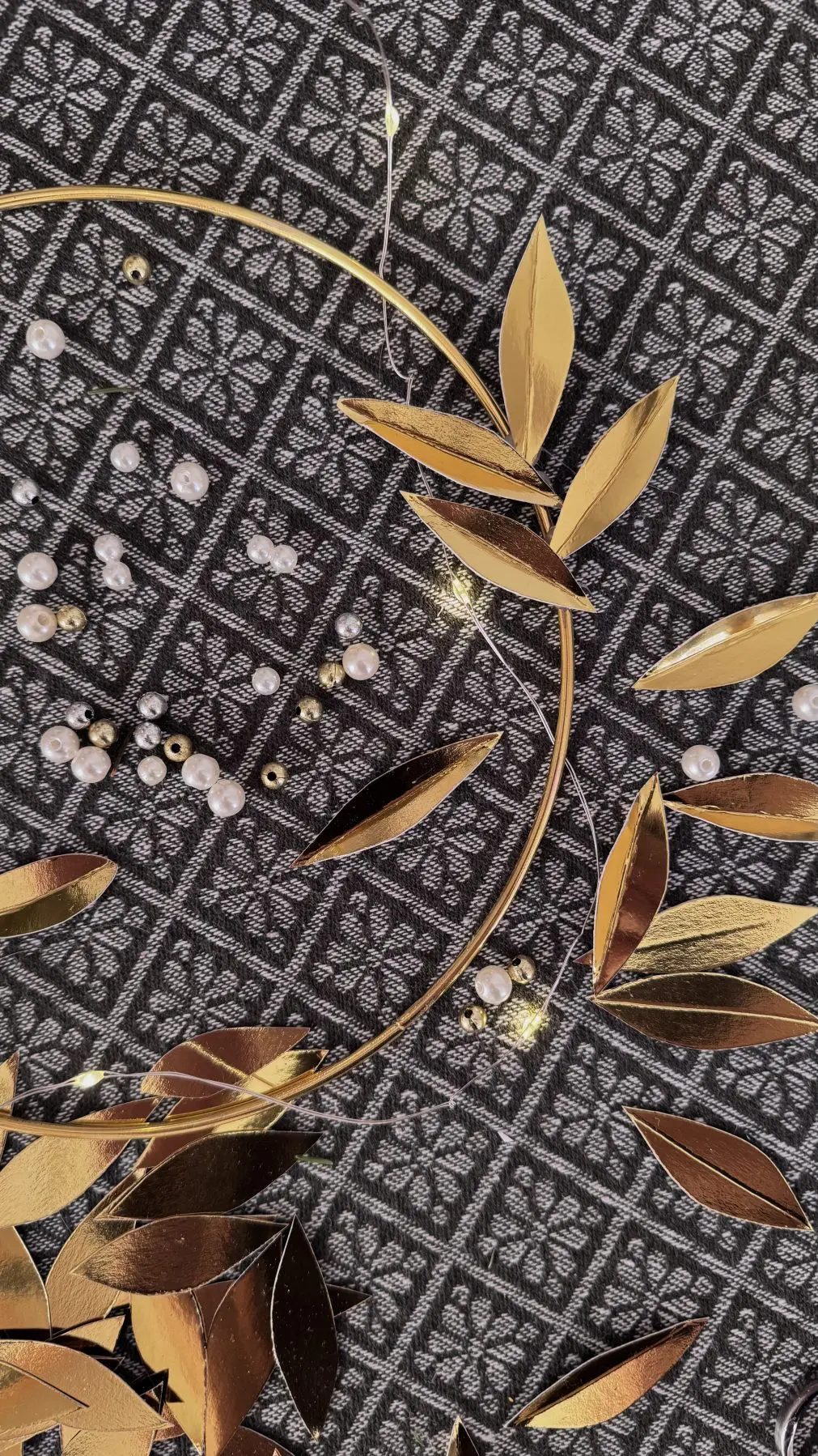 Den härliga julen närmar sig, och det är ju så roligt att pyssla något egendesignat julpynt! En av årets stora trender är att göra julpyssel med guldmetall. Idag visar jag hur man gör en krans i guld, väldigt lättgjord med guldmetallpapper, en metallring och pärlor! Det här är ett mycket hållbart pyssel, guldkransen kan sparas i jullådan och plockas fram till varje jul!