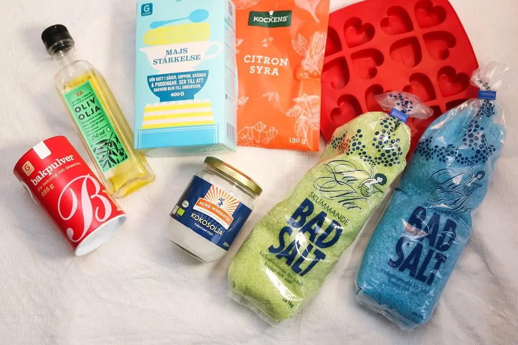 - Testar du istärningsformar: pressa ned massan i formarna, tag försiktigt ur badbomberna ur formen efter bara 5 minuter. Lägg att torka på bakplåtspapper i 24 timmar.