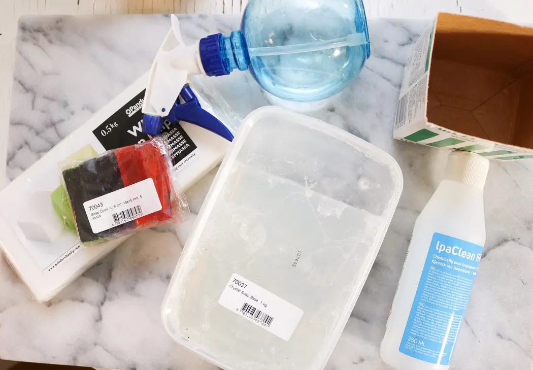 3) Spraya med Isopropanol (det är bara för att ta bort luftbubblor och gör även att tvål med flera färger sitter ihop). Det fungerar säkert utan detta.