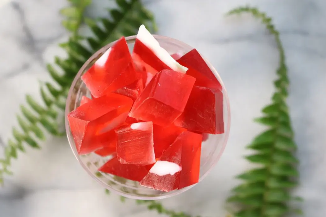 - 200 gr genomskinlig tvålmassa + några droppar röd tvålfärg