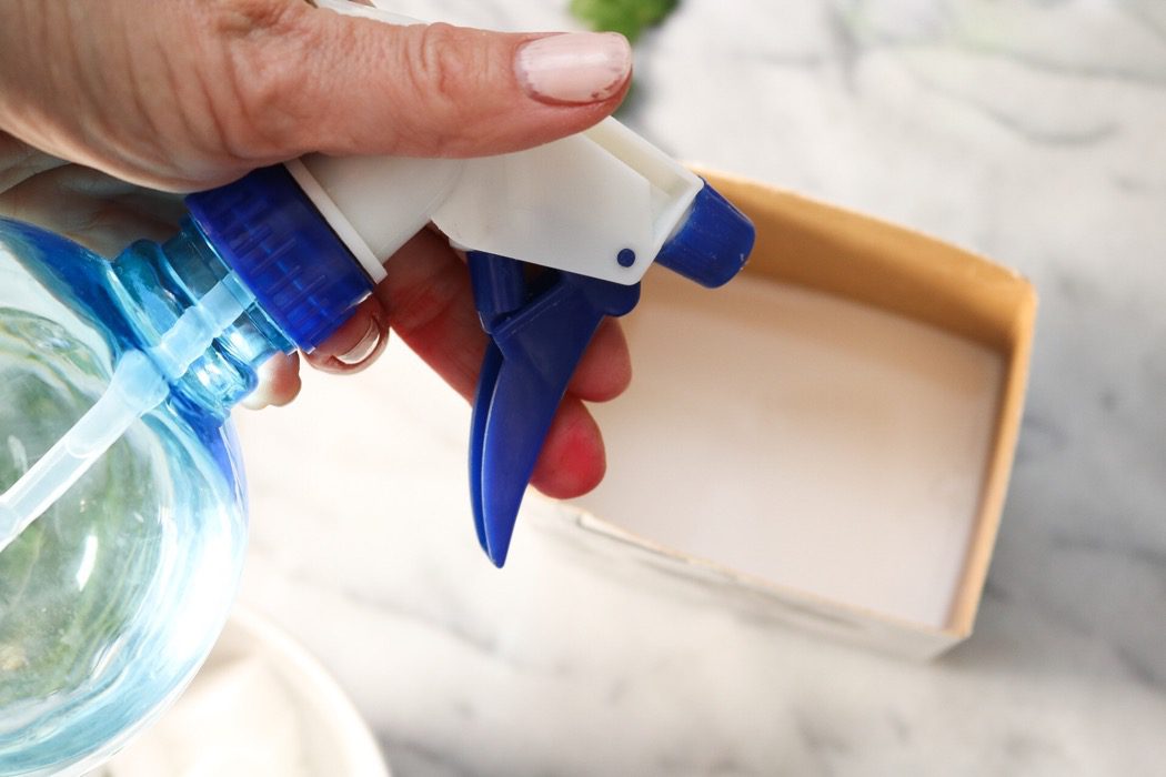 Verktyg: Mjölkpaket, sprayflaska, skålar, sked/kniv