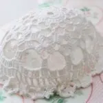 Det är här verkligen ett enkelt pyssel! Virkade dukar hittar man nästan alltid på loppis för bara några kronor. Vill man göra påskäggen mer färggranna går det ju alltid att färga dukarna i textilfärg.